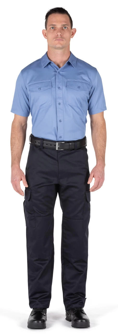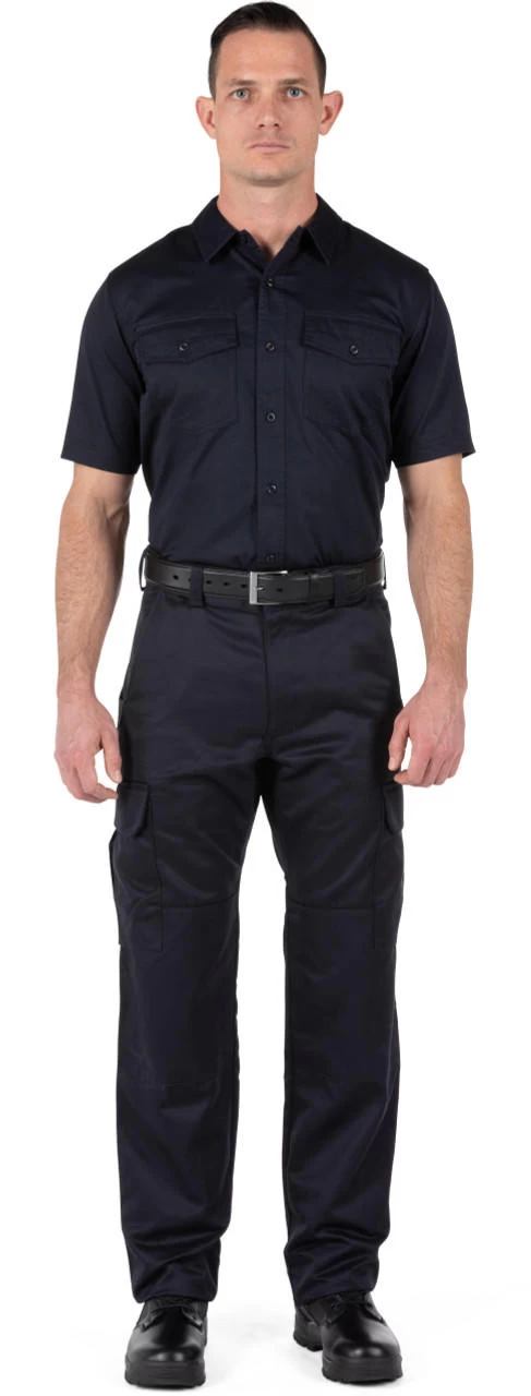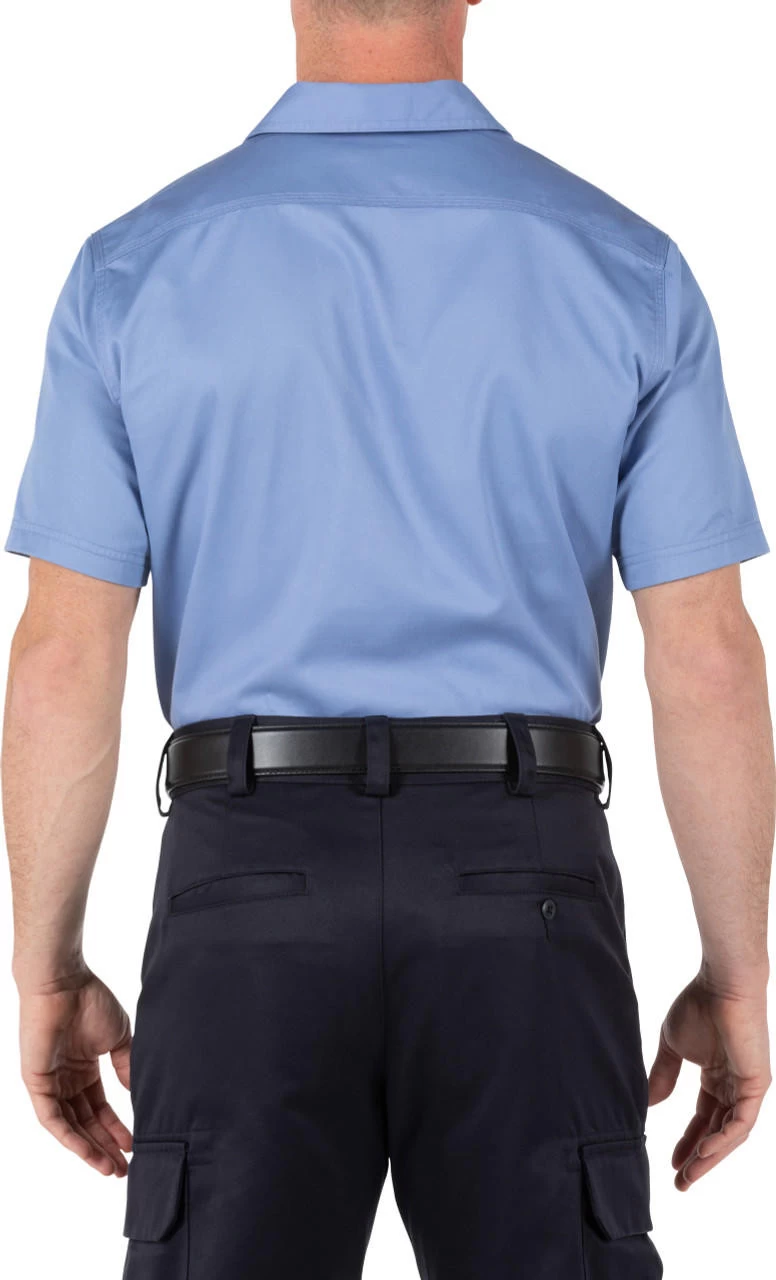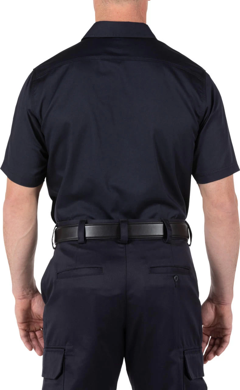 The 5.11 Tactical Men’s Company Short Sleeve Shirt 71391 backs the wearer with a vital layer of safety (certified to NFPA 1975, 2019 edition) in a high-tech, low maintenance fabric. It’s made with a soft, yet durable cotton twill that’s wrinkle-resistant and stitched with protective Firefly thread. The Company Shirt also features heat-resistant melamine buttons and a modern, yet professional collar shape with collar stays. Badge tab and epaulette kit included.