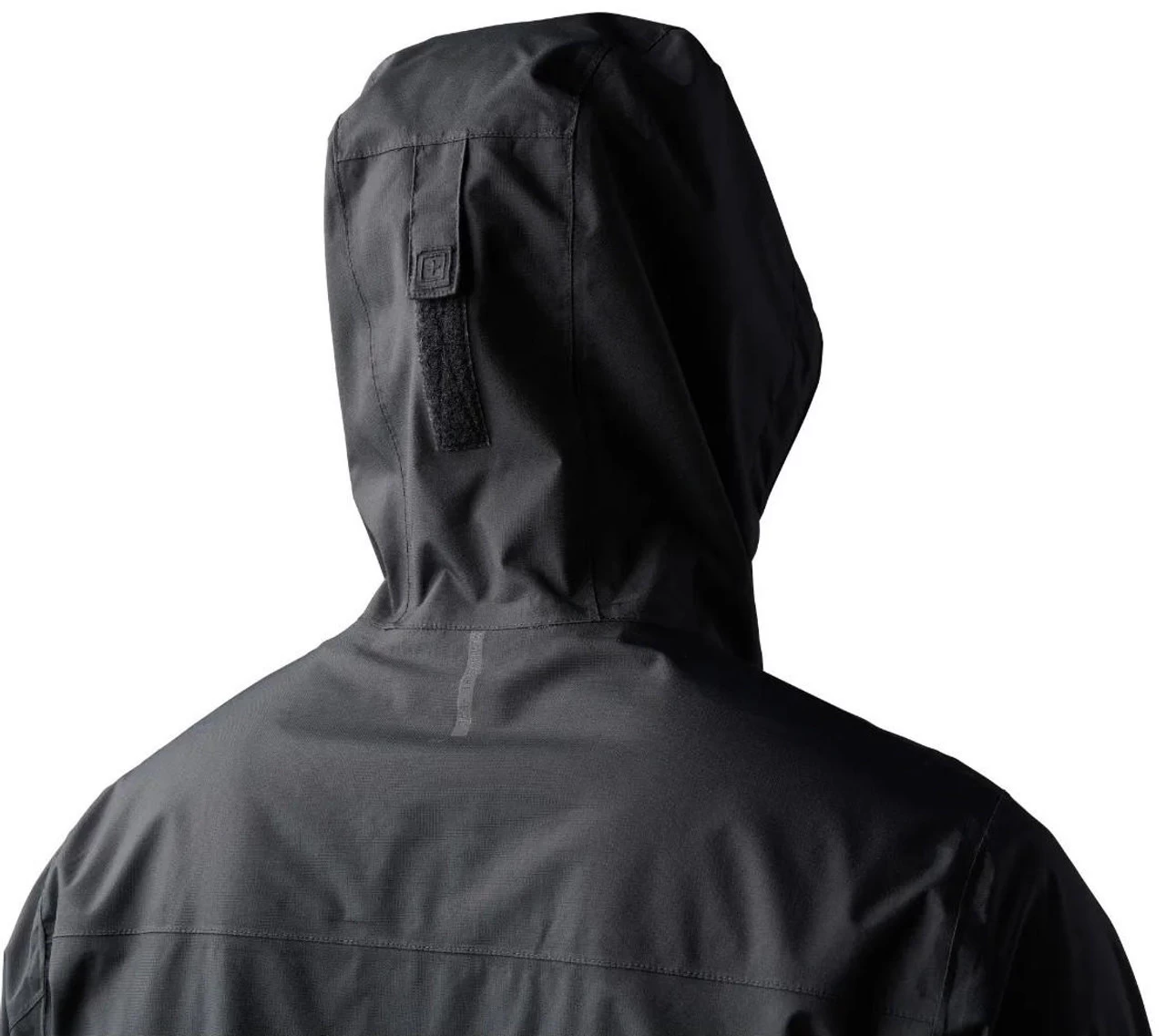 The 5.11 Tactical Men’s Exos Waterproof Rain Shell Jacket 48370 gets you through the heaviest downpours at bay thanks to rugged 20K waterproof and 10K breathable 2.5L ripstop fabric with DWR finish that is seam-sealed from top to bottom. This rain shell won’t weigh you down when you’re on the move and stows small after the mission is complete. A pair of external zippered hand pockets provide storage for your phone, flashlight and other gear. The stationary hood is adjustable, along with the hem – using internal shock cord systems. A reinforced brim on the hood keeps rain off your face. The external and internal storm flaps and chin guard provide extra protection, while cuff tabs help seal out water.
