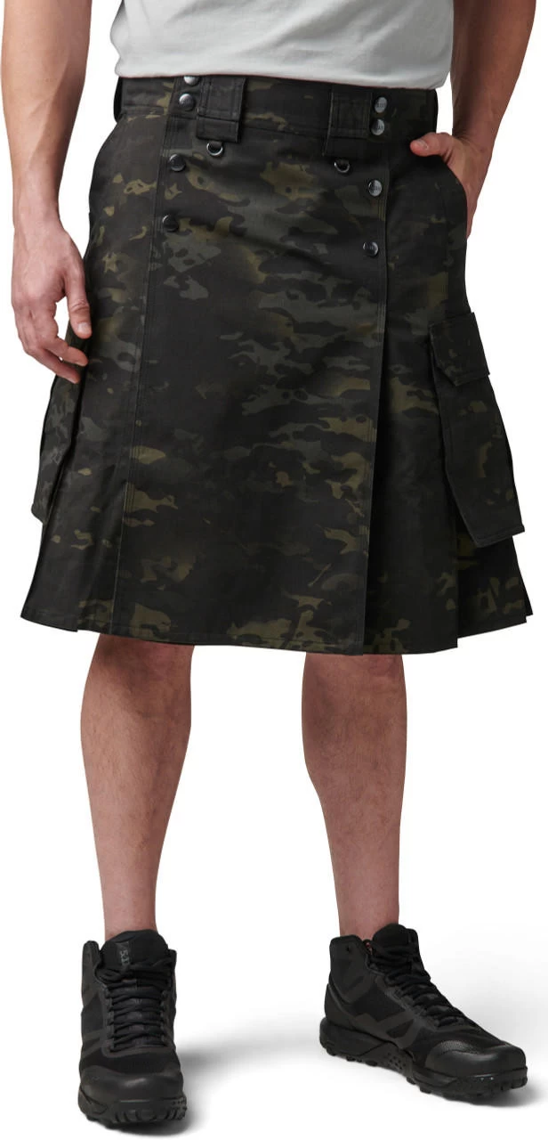 The 5.11 Tactical Men’s Multicam Black Commando Kilt 73356MC provides a unique opportunity for complete freedom of movement and breathability. Traditional kilt styling in MultiCam with removable cargo pockets.