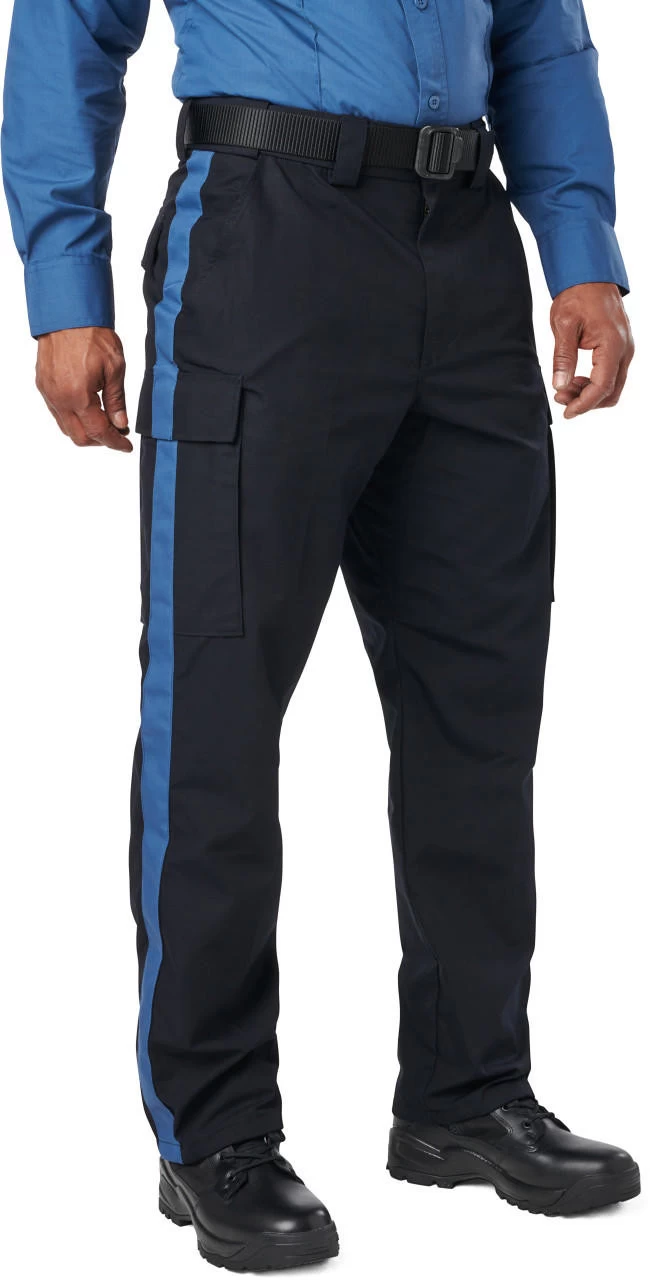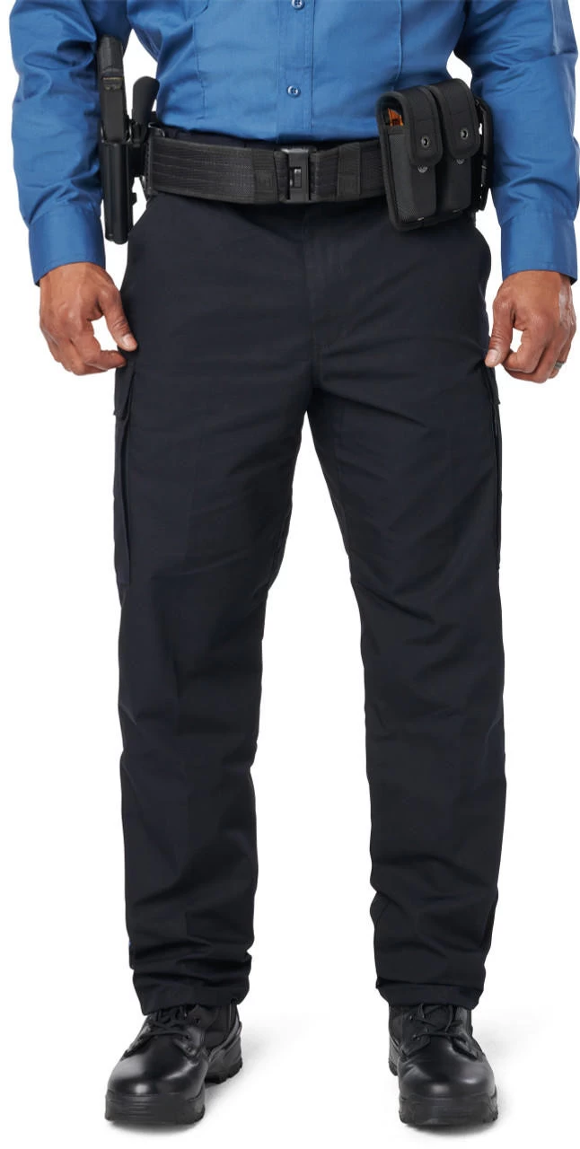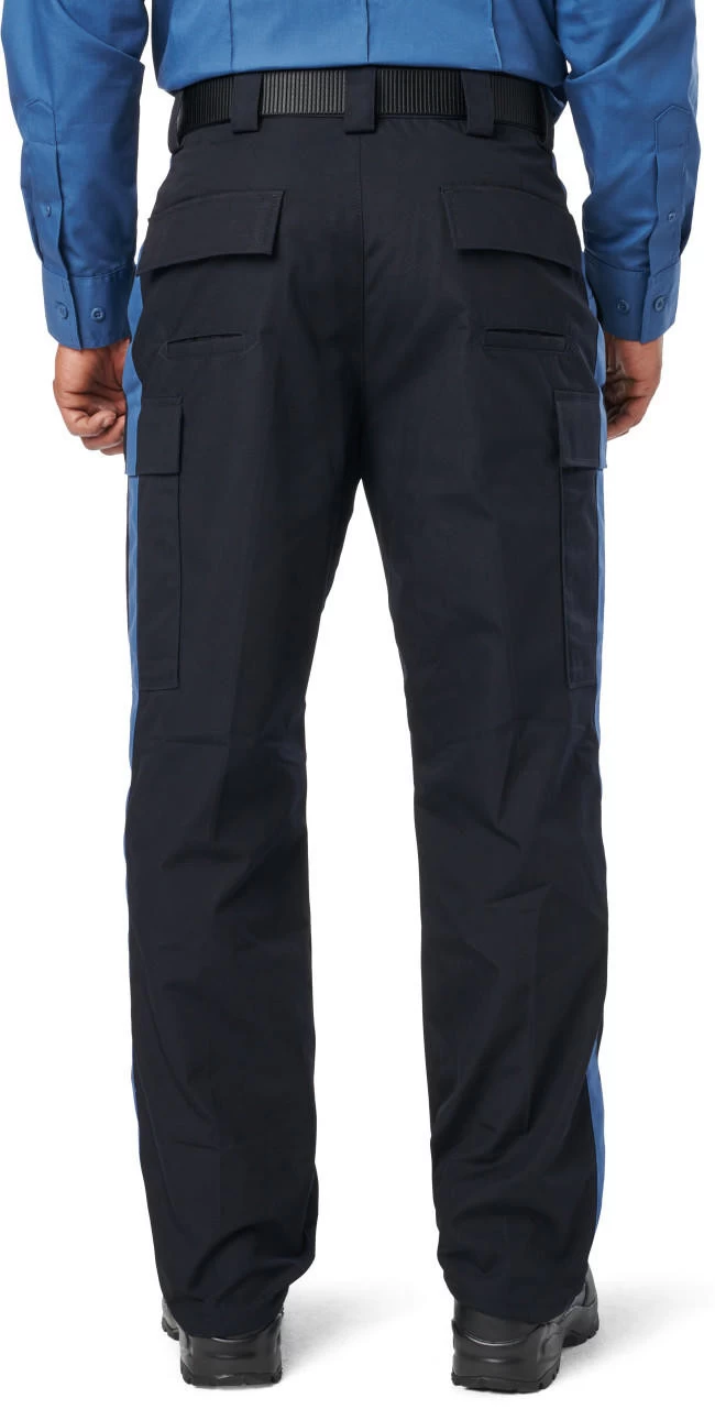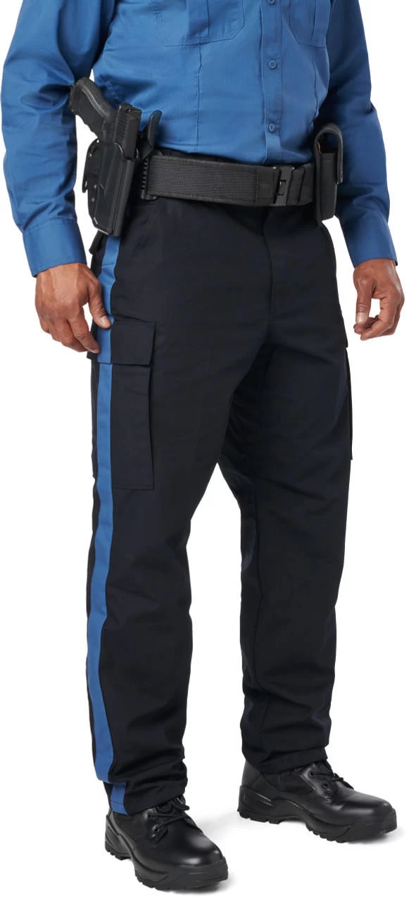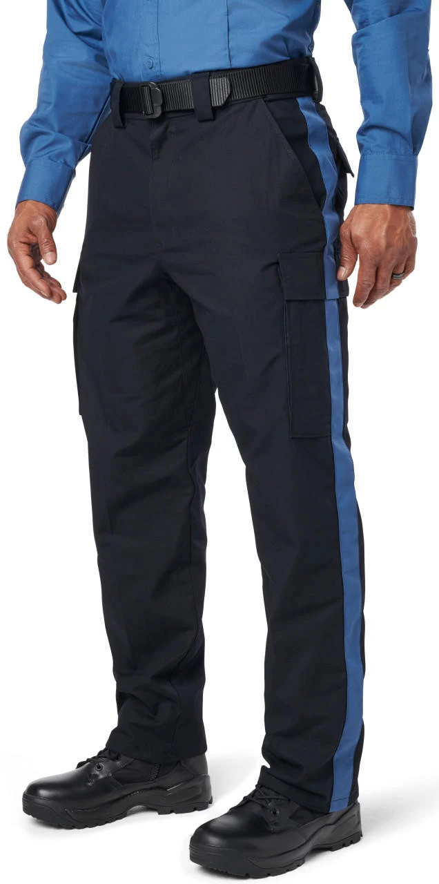 The 5.11 Tactical Men’s NJDOC PDU Class B RipStop Cargo Uniform Pant 74062US is built tough for durability and lasting comfort. Teflon coated to repel stains, liquid, and soil, the PDU Class B Twill Cargo Pant features a professional flat front design with permanent military creases and an internal gripper panel to keep your shirt securely in place, ensuring a professional profile in any setting. A patented cargo pocket design allows after-purchase striping, and each cargo pocket hides a secure covert pocket directly behind it for additional storage. The classic 5.11 self-adjusting tunnel waistband provides a secure, comfortable fit, genuine YKK zippers and Prym snaps ensure quick and reliable action, and an integrated flashlight pocket offers added utility.