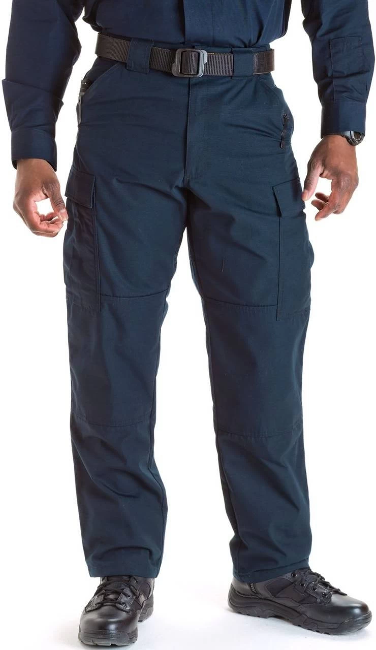 The 5.11 Tactical Ripstop TDU Pant is built from a toughened, dependable, lightweight, high-performance cotton-poly ripstop blend for lasting comfort and enhanced durability that stands up to the harshest environments. This tactical pant features a self-adjusting tunnel waistband and roomy cargo pockets that have a secondary slot for AR magazines. This pant is backup belt system compatible to easily customize your tactical gear and the Teflon fabric treatment repels stains, moisture, and soil to keep you looking clean all shift long. 5.11 has also added double knee construction to accept internal knee pads.