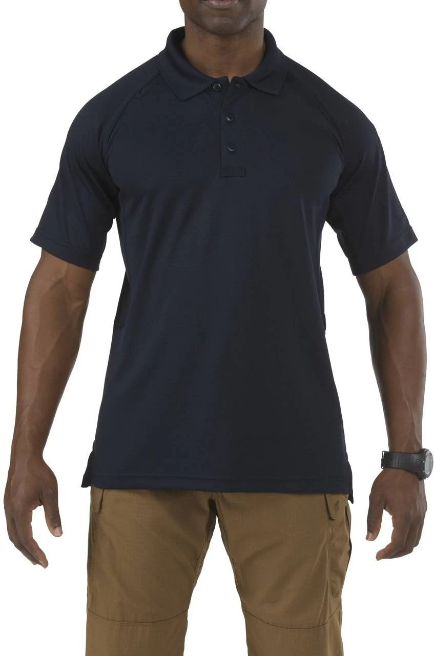 The 5.11 Tactical Short Sleeve Performance Polo Shirt features superior moisture management technology and quick drying characteristics to allow you to operate at peak levels while remaining cool, dry, and comfortable throughout your day. Built from a 6.7 oz. jersery knit polyester fabric, the Performance Polo is snag, shrink, and wrinkle resistant and features a no-roll collar for a clean, professional appearance that lasts all day long. Gusseted sleeves ensure complete freedom of movement while integrated mic clips keep you connected. This polo also has 5.11’s signature pen pockets on the left sleeve for quick convenience.