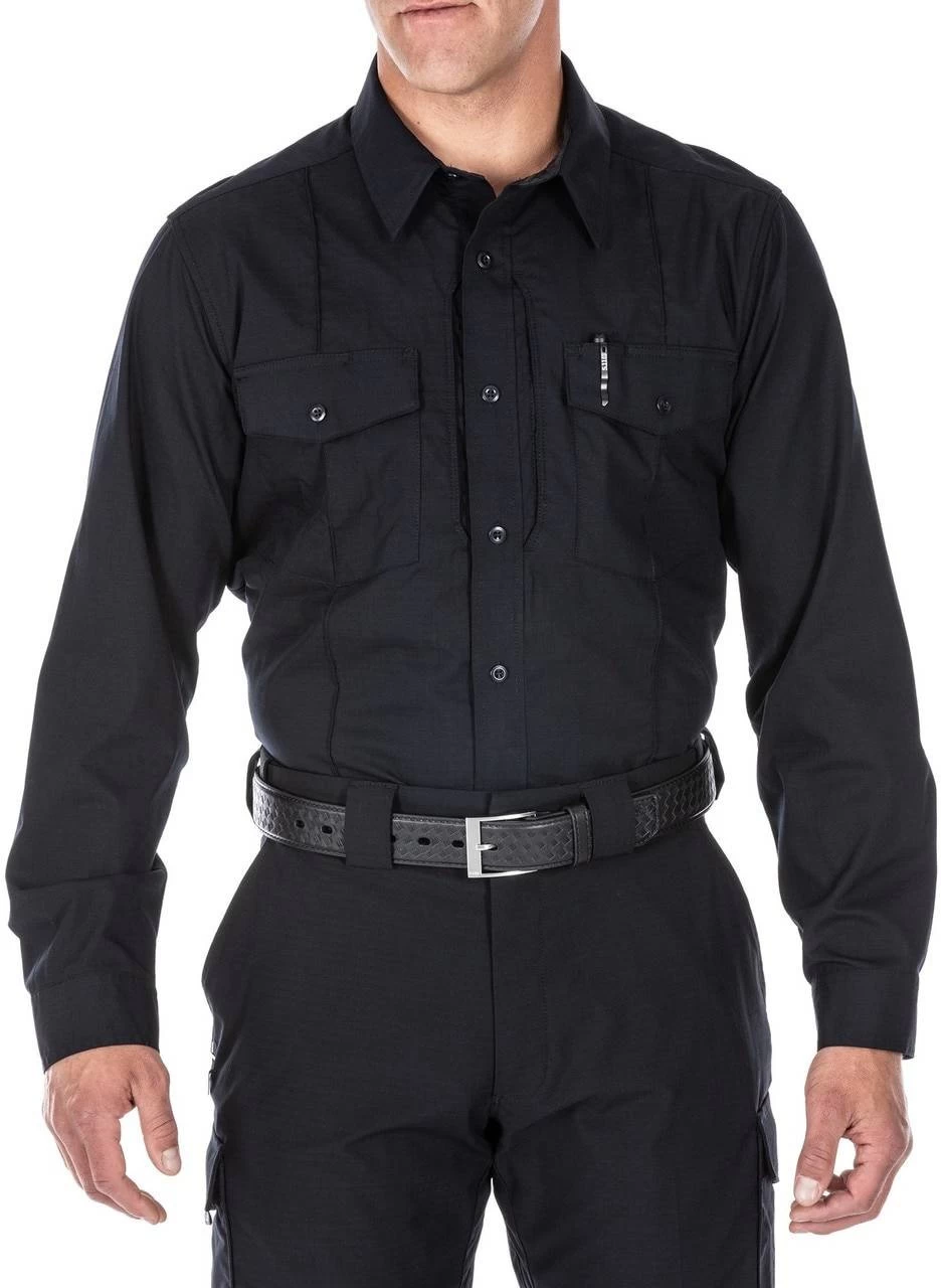 The 5.11 Tactical Stryke PDU Class B Long Sleeve Shirt was designed to stand up to consistent use in harsh environments and features 5.11’s 4.8 oz. Flex-Tac mechanical stretch fabric for outstanding durability and breathable comfort throughout your shift. A Teflon treatment offers enhanced resistance from moisture, stains, and soil. The sewn in permanent creases and hidden front-zip closure ensure a crisp, professional appearance. The Stryke Class B PDU uniform shirt has 5.11’s hidden document pockets to offer ample and covert storage. There is also a mic pass-though point and a camera/radio loop enforcement kit. This uniform shirt has been reinforced with triple needle stitching and bartacking at major stress points. Also available in Short Sleeve!