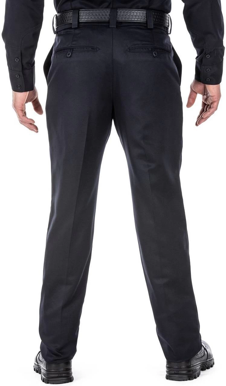 The 5.11 Tactical Twill PDU Class A Pant is elegant enough for your dress uniform, but functional and durable enough for duty wear. The Class A Twill PDU Uniform Pants feature superior craftsmanship and a clean, neat appearance that will keep you looking your best all shift long. A Teflon coating repels stains, moisture, and soil. They also feature a professional flat front design with permanent military creases and an internal gripper panel to keep your shirt securely in place, ensuring a professional profile in any setting. The self-adjusting tunnel waistband provides a secure, comfortable fit, genuine YKK zippers and Prym snaps ensure quick and reliable action, and a covert thigh pocket offers added utility. Class B Pant Also Available!