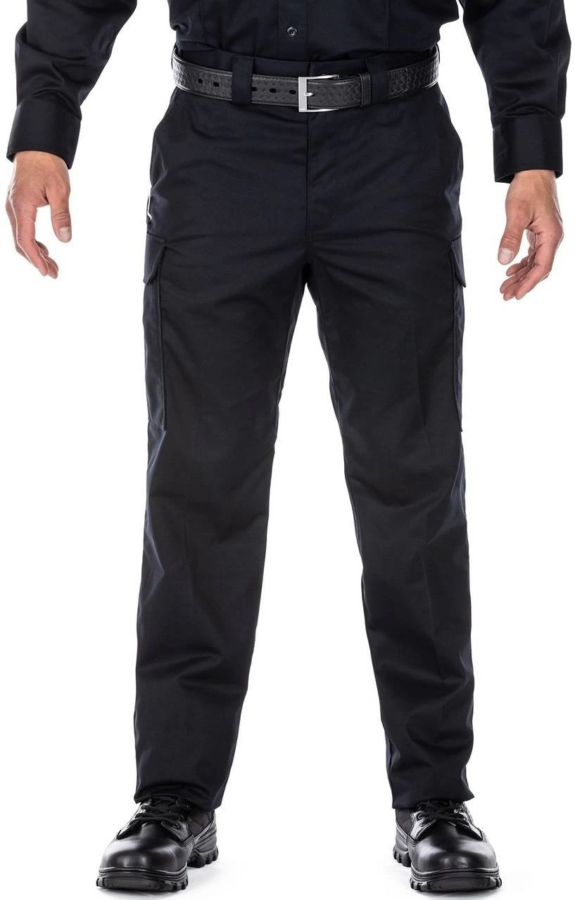 The 5.11 Tactical Twill PDU Class B Cargo Pant are built to stand up to the harshest patrol environments while retaining a neat and professional appearance. Teflon coating repels stains, moisture, and soil and the professional flat front design has permanent creases. An internal gripper panel keeps your shirt securely in place ensuring a professional profile in any setting. Twin cargo pockets feature inverted pleats to allow for easy stripe or tape placement. Each cargo pocket hides a secure covert pocket directly behind it for additional storage. The self-adjusting tunnel waistband provides a secure, comfortable fit and a diamond gusseted crotch gives you free and unhindered movement. This uniform pant also fade, shrink, and wrinkle resistant. Class A Pant Also Available!