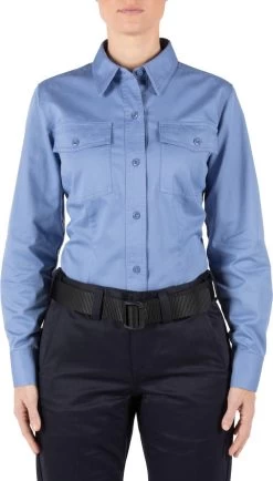 The 5.11 Tactical Women’s Company Long-Sleeve Shirt 62399 backs you with a vital layer of safety (certified to NFPA 1975, 2019 edition) in a high-tech, low maintenance fabric. It’s made with a soft, yet durable cotton twill that’s wrinkle-resistant and stitched with protective Firefly thread. The Company Shirt also features heat-resistant melamine buttons and a modern, yet professional collar shape with collar stays. Badge tab and epaulette kit included.