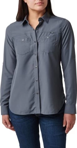 The 5.11 Tactical Women’s Marksman Long Sleeve Shirt 62061 features a 50+ UPF rating that keeps you protected from the sun whether you’re on duty or off. Professional and functional with a long sleeve style, two-piece collar, and adjustable sleeve button cuff. RAPIDraw front placket for easy wear. Vent-Tac gusseted mesh under arm vents, side seam vents, and moisture wicking finish keep you cool when the mercury is on the rise. Imported.