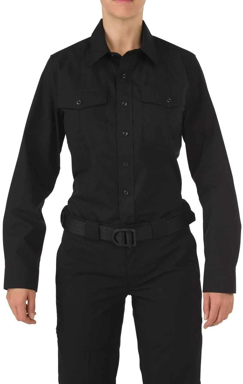 The 5.11 Tactical Women’s Stryke PDU Class A Long Sleeve Shirt was engineered specifically for female operators and takes high-performance uniform wear to the next level. This uniform shirt is crafted fro 4.8 oz. Flex-Tac Mechanical Stretch Fabric for outstanding durability, performance, and comfort in any environment. The Teflon treatment offers enhanced resistance against stains, spills, and soil. Permanent creases and a hidden front zip closure ensure a crisp, professional appearance for your PDU or dress uniform. This shirt also has a mic pass-through access point and a camera or radio loop enforcement kit, and epaulette kit, and a badge tab. The Women’s Stryke PDU has been reinforced with triple needle stitching and bartacking at major stress points. Melamine buttons will not burn, melt, or crack. Also available in Short Sleeve.