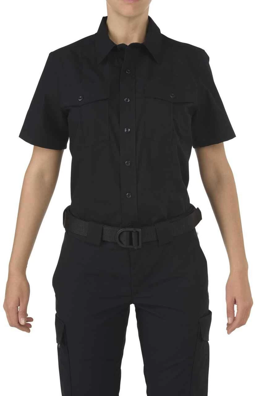 The 5.11 Tactical Women’s Stryke PDU Class A Short Sleeve Shirt was engineered specifically for female operators and takes high-performance uniform wear to the next level. This uniform shirt is crafted fro 4.8 oz. Flex-Tac Mechanical Stretch Fabric for outstanding durability, performance, and comfort in any environment. The Teflon treatment offers enhanced resistance against stains, spills, and soil. Permanent creases and a hidden front zip closure ensure a crisp, professional appearance for your PDU or dress uniform. This shirt also has a mic pass-through access point and a camera or radio loop enforcement kit, and epaulette kit, and a badge tab. The Women’s Stryke PDU has been reinforced with triple needle stitching and bartacking at major stress points. Melamine buttons will not burn, melt, or crack. Also available in Long Sleeve.