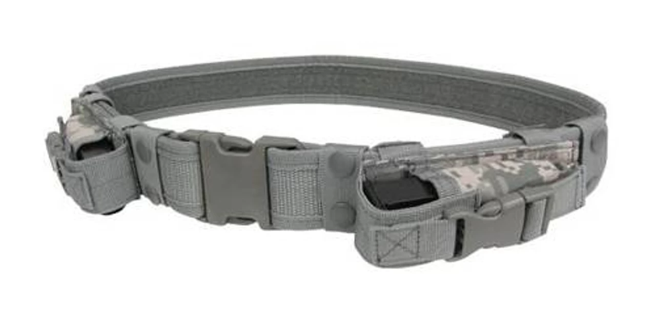 The Condor Tactical Belt is composed of high-quality nylon and fastens with a quick-release buckle. Two removable magazine pouches, which also feature quick-release buckles, provide extra storage. Rivets are suited to store holsters, a flashlight, an alice clip, or anything you need to keep accessible within reach. This belt provides a stable base for load bearing without adding any bulk to your gear. Though sturdy, this belt is lightweight and adjustable, so it is ergonomic and comfortable to wear all day.
