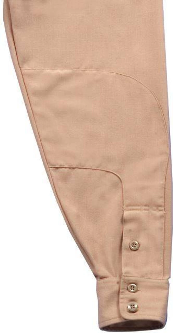 - Plain double-needle rounded pockets with scalloped flaps, hook and loop closure, and non-functional button and a pen opening in left pocket and pocket flap