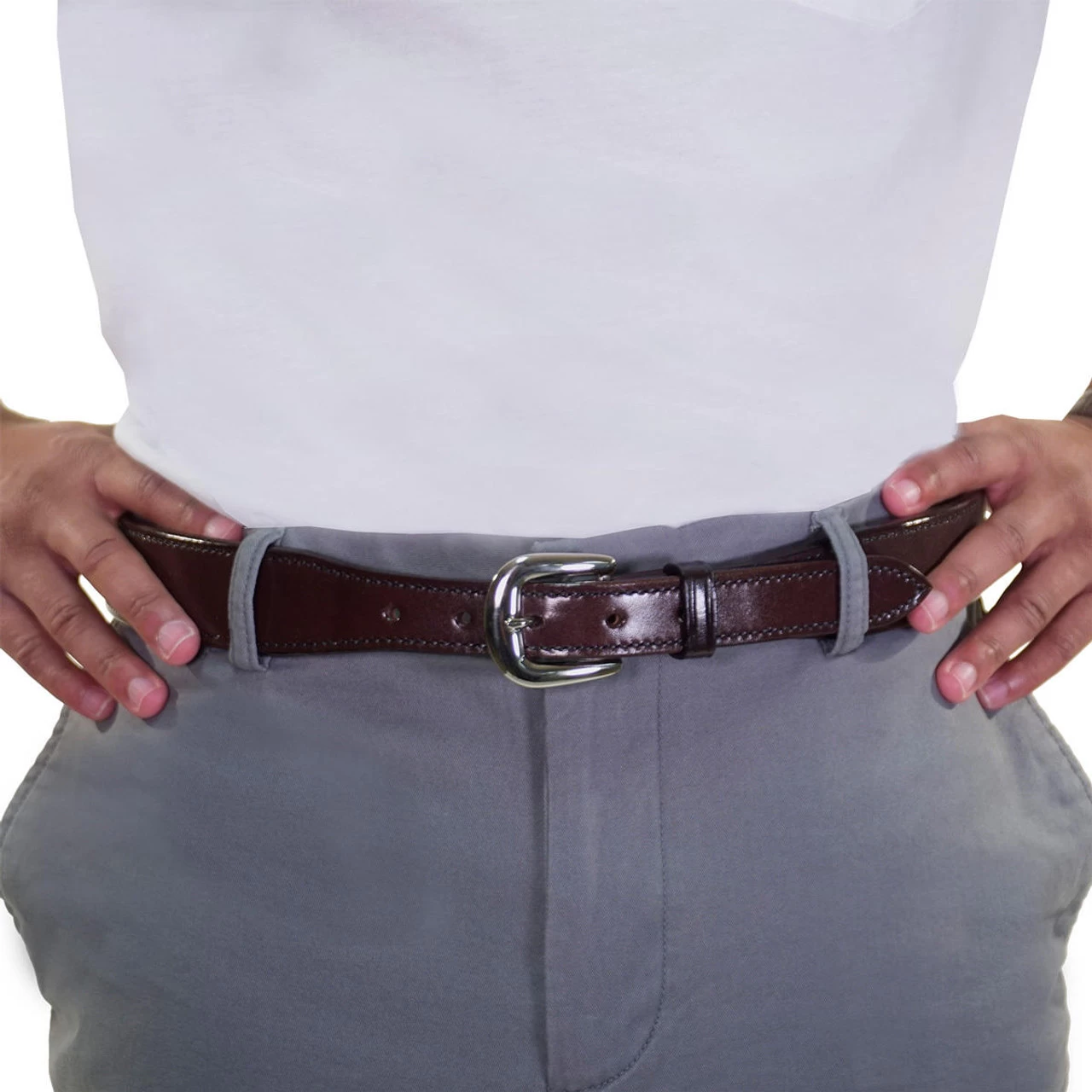 The Contoured Belt is made of double-thickness premium saddle leather. The body of this belt is 1.5″ wide and tapers town to 1″ at the nickel-plated solid brass buckle.