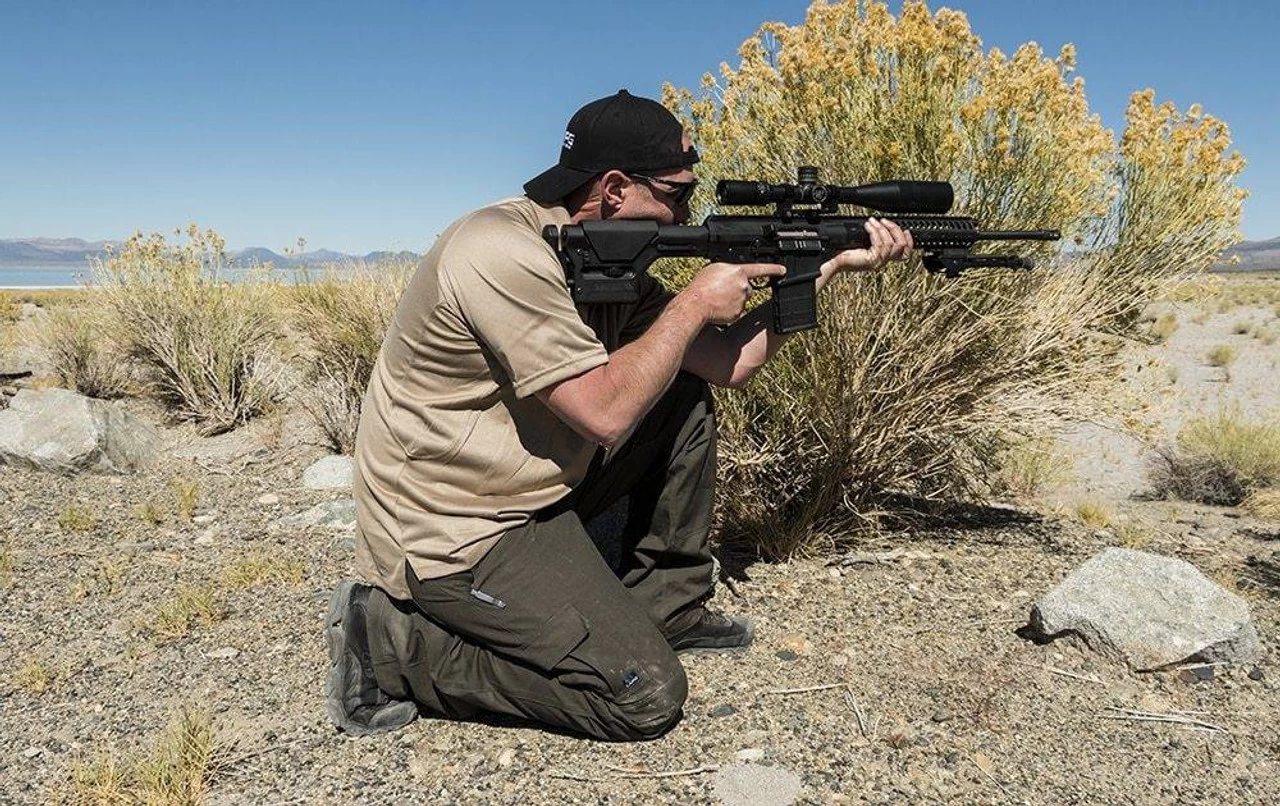 Aside from the fabric, this pant features an elastic waistband, 7 pockets in total (including one slip pocket and two cargo pockets), a gusseted crotch, articulating knees, a brass tac-stud closure, and a brass locking YKK zipper. In short, we packed the pants with all the features you’ve come to expect from LA Police Gear pants.