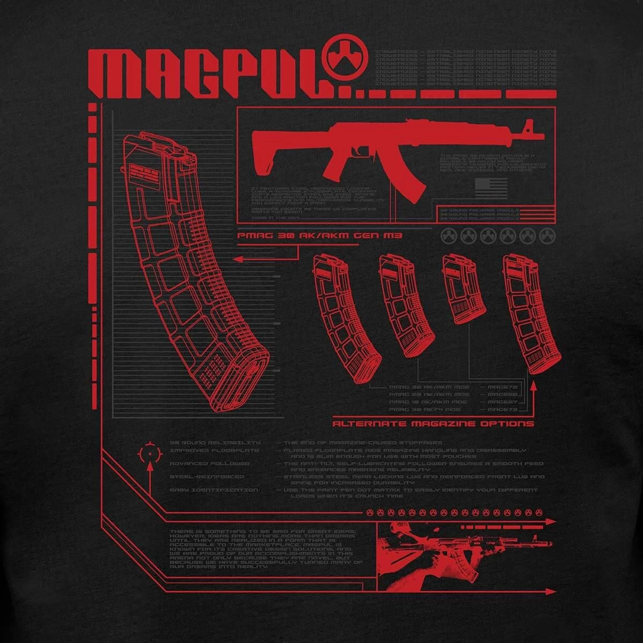 The Magvision AK T-Shirt is printed in the US on comfortable 100% cotton fabric.