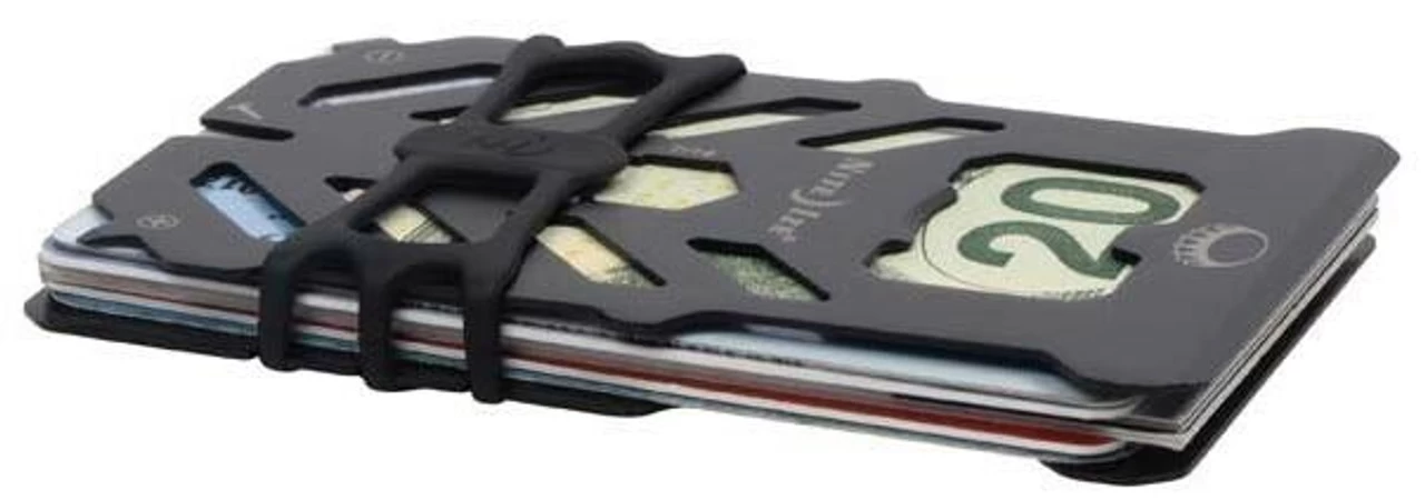 The Nite Ize Financial Tool RFID Blocking Wallet is a wallet, multi tool, and RFID-blocking protector all in one. Placing your RFID enabled cards between the stainless steel plates provides maximum effectiveness against unauthorized attempts to access your information. Featuring 10 different tools integrated into its compact, heat-treated stainless steel plates held together by high tensile Cash Wrap Strap.