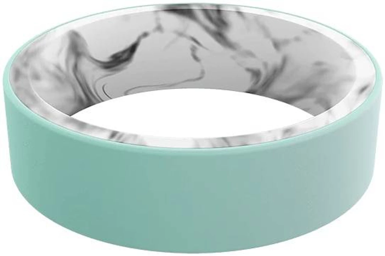 The Qalo Women’s Switch Reversible White Marble & Aqua Silicone Ring is made from two different colors of Comfort Fit silicone layered on top of each other that is designed to slide on and off in a quick-flip design. Comfortable enough to wear all day, this ring lets you choose between two different colors to match your current outfit.