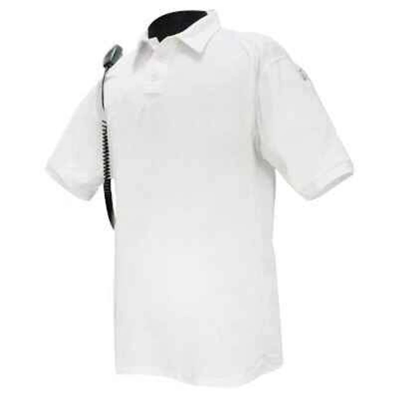 Moisture Management Fabric Mic holder on both shoulders & below front buttons Pen Pocket on left sleeve Hemmed sleeves Stain resistant – UV protected Wrinkle Free – Odor control Collar stays Full gusseted sides and sleeves for extra comfort Machine washable
